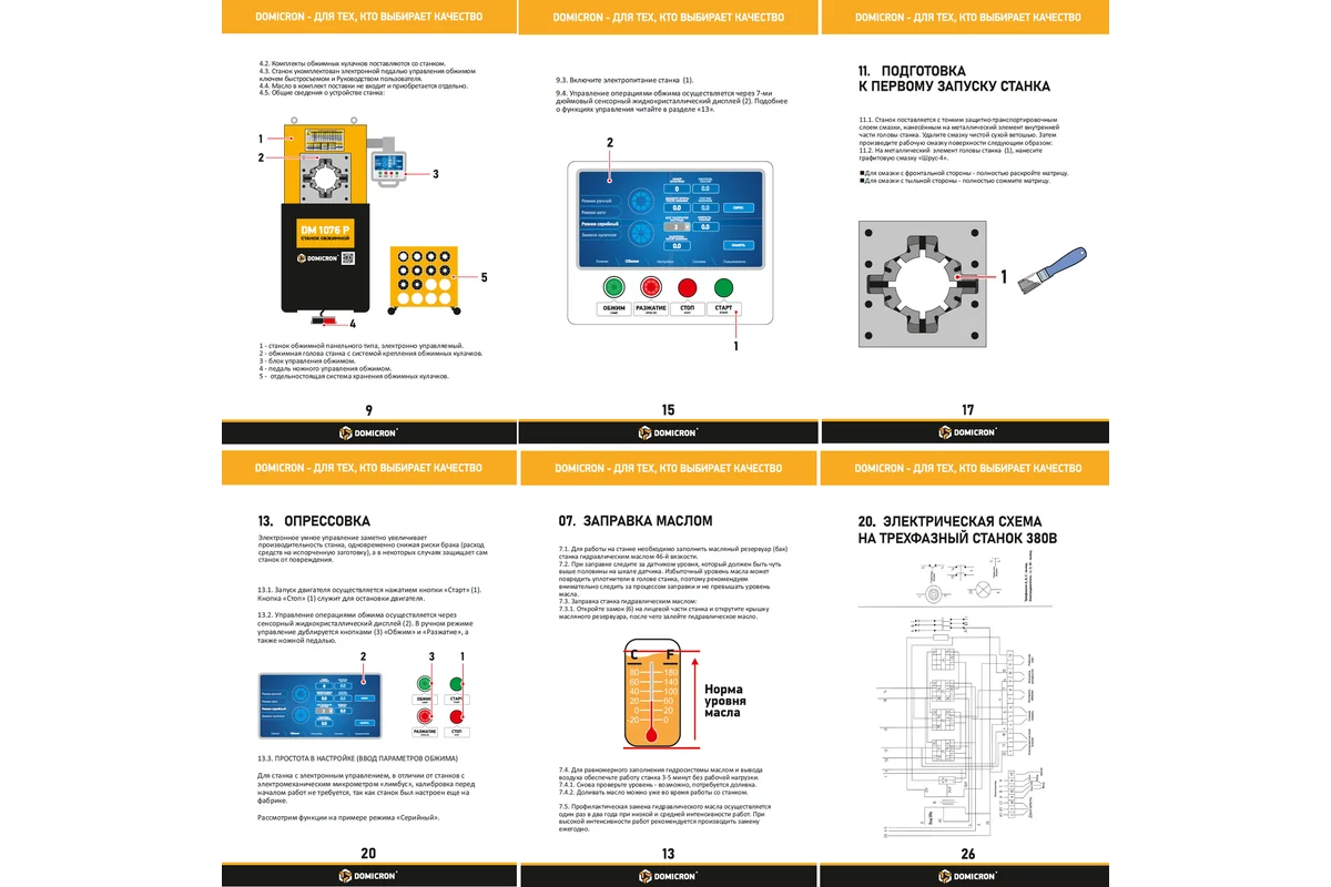 Обжимной пресс станок для РВД DOMICRON Smart Panel DM 1076P (380V) мотор Siemens DM1076P380VS от известного бренда Domicron - это продолжительный срок службы и безотказность в любых температурных условиях.